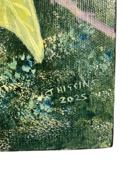 A beautiful original large painting - acrylic on canvas - showing blue tits and a butterfly in amongst hedgerow foliage. The painting has been signed by the artist on the bottom right hand corner (see separate photo)