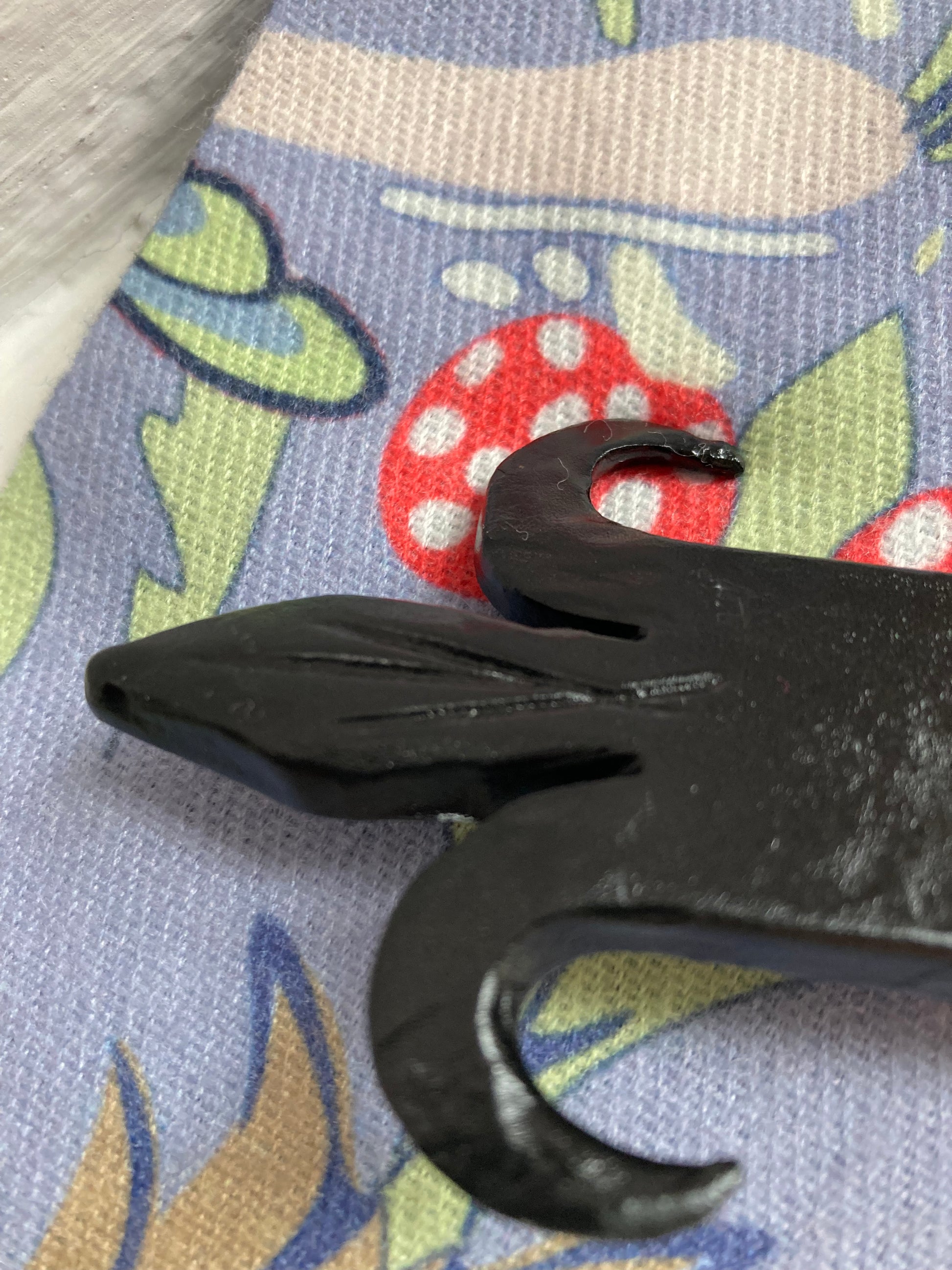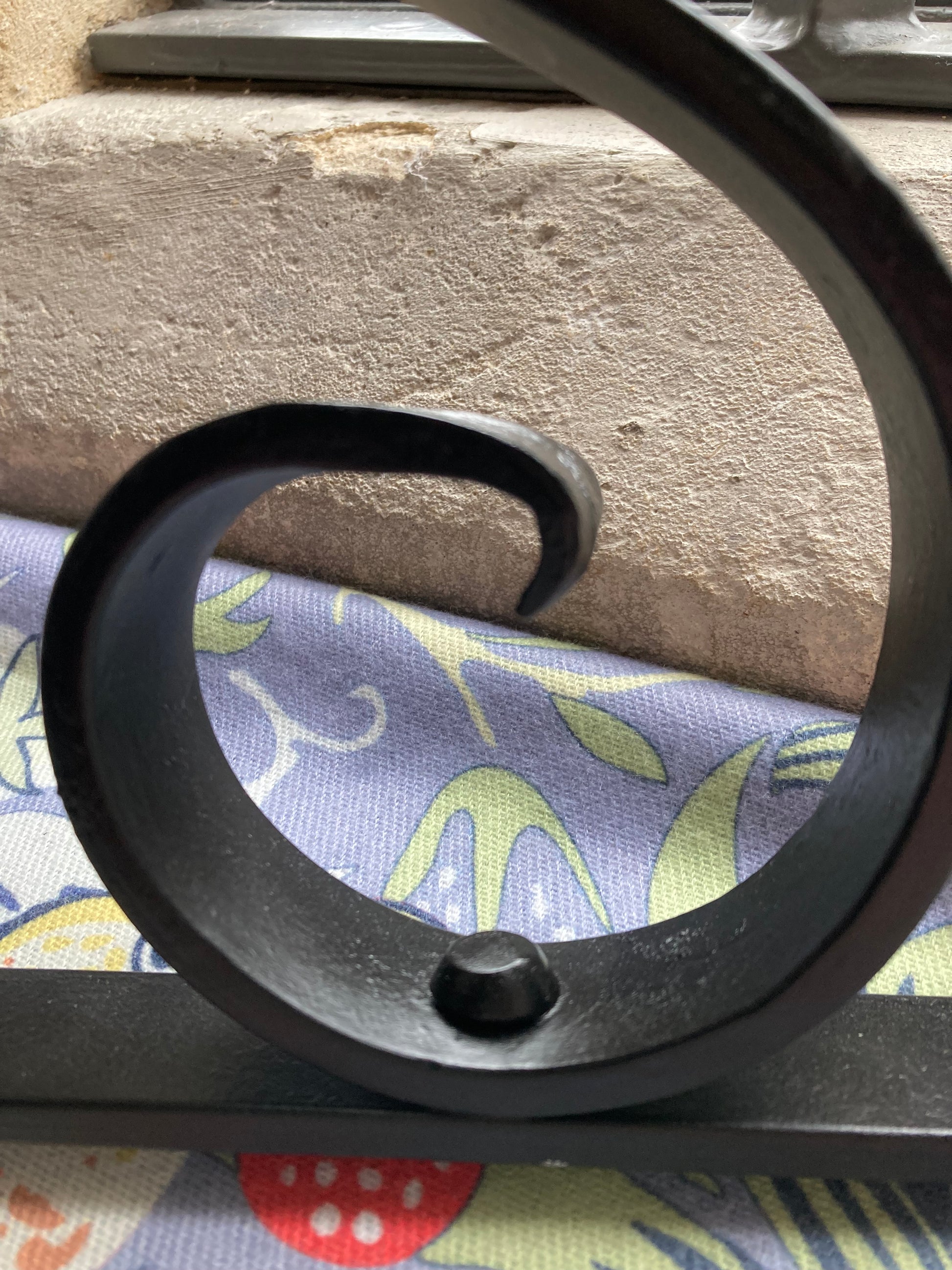 A blacksmith made hanging bracket which is both beautiful and substantial, locally crafted at Blenheim Palace Sawmill (19.3 miles from Kelmscott), metal hanging bracket for inside or outside use. Decorated with the Fleur de Lys at the top of the bracket. A substantial hook means that you can hang your chosen piece with confidence. Fixing holes both top and bottom