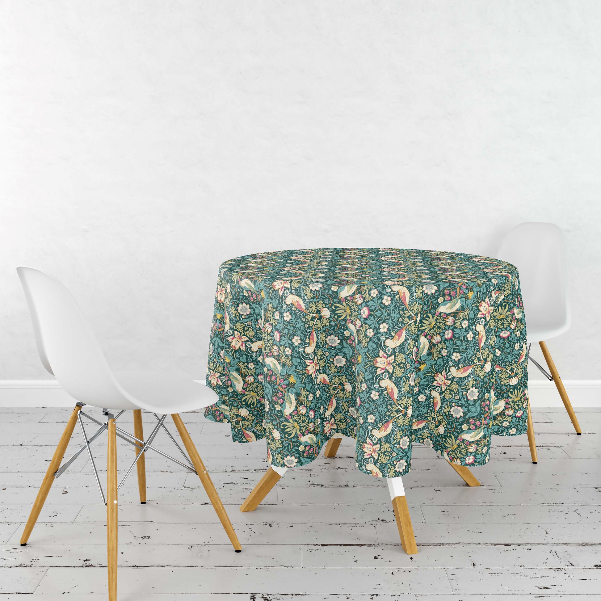 Cotton tablecloth - 132cm circular - Strawberry Thief green
