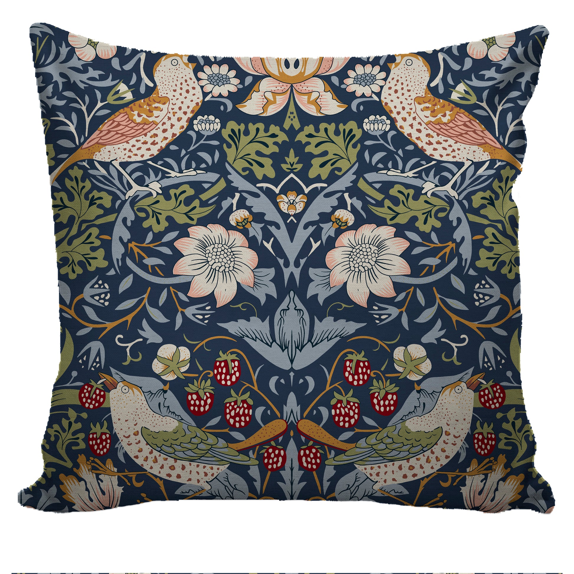 Cushion cover - velvet backing, cotton front - Strawberry Thief - navy