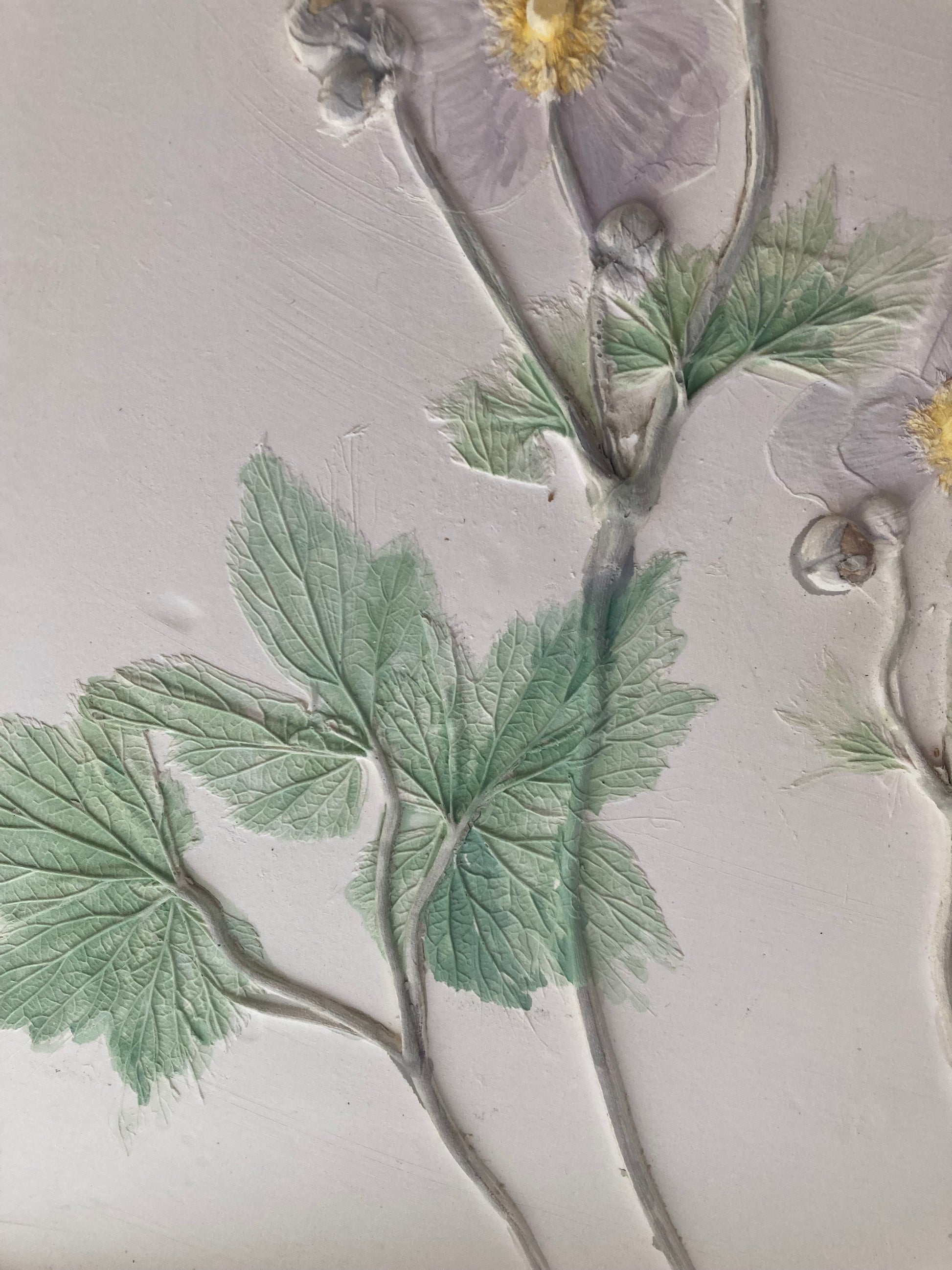 Handmade ceramic plaques made only a few miles away from Kelmscott Manor. The ceramic base is inlaid with local flora and fauna. There is a hanging hook on the back of the plaque making for easy display and each piece has been initialed by the artist