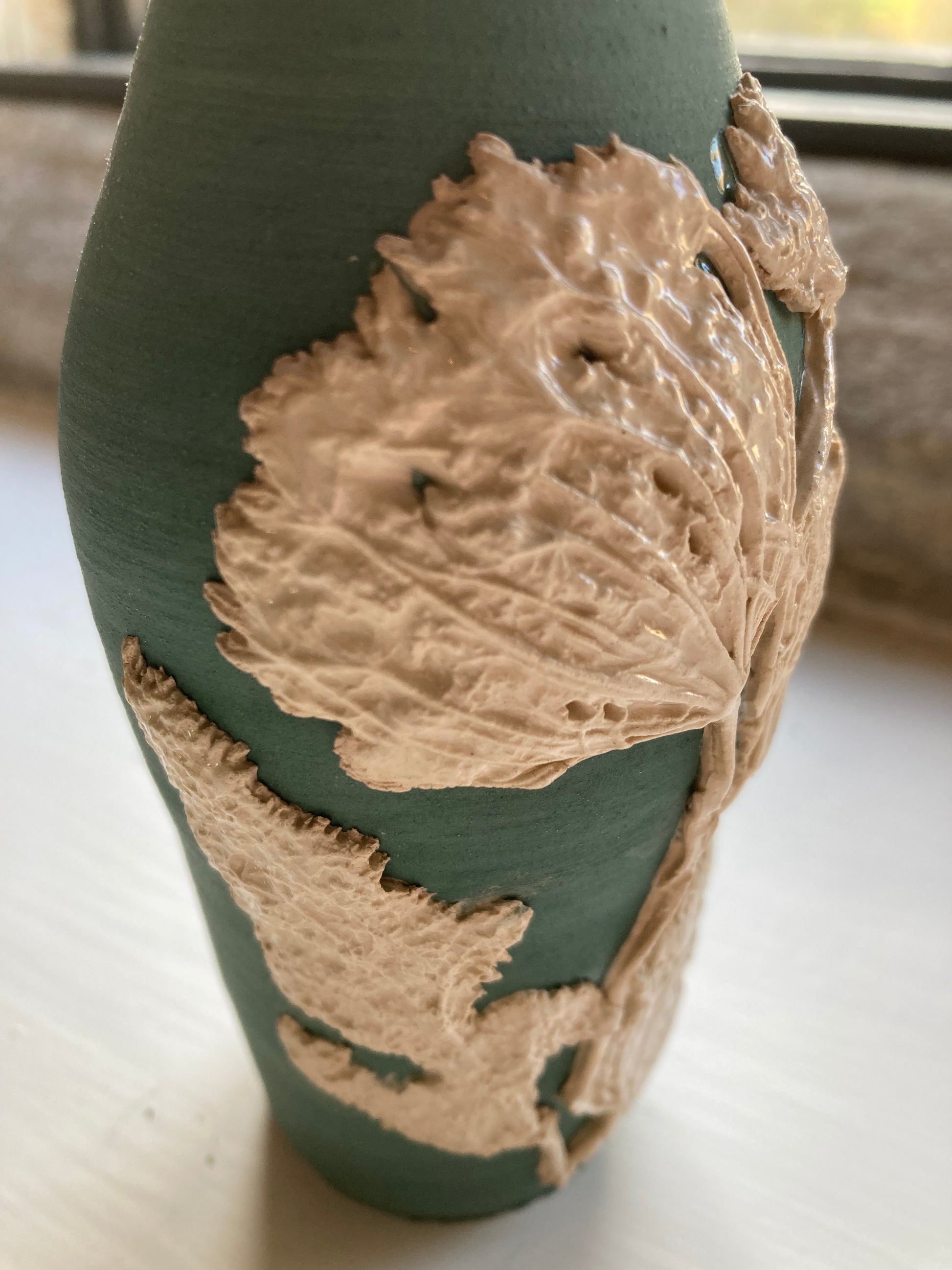 These beautiful vases are made from white earthenware clay and thrown on the wheel; every part of the making process is done by hand and each one is completely unique. The vases are decorated with ceramic sprigs, which have been hand cast directly from plants collected at Kelmscott Manor.